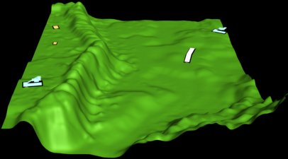 A terrain height field and some markup for placed buildings