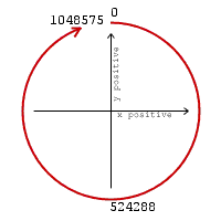 When representing agent orientation a value of 0 indicates the agent facing along the positive y axis, 262144 indicates the agent facing along the positive x axis, 524288 indicates the agent facing along the negative y axis and angles increase to a value of 1048575 just before reaching 0.