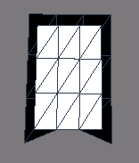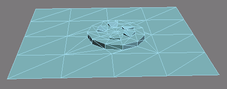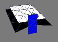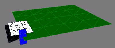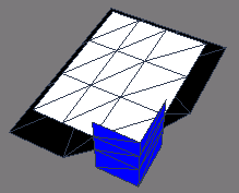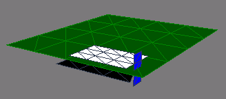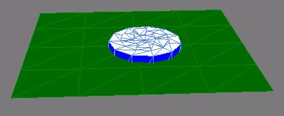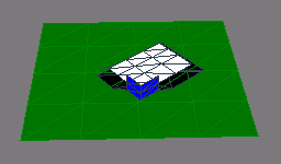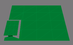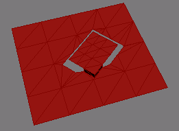 The following images show the example building placed against a flat piece of terrain, and the resulting mesh generated by the content processing.