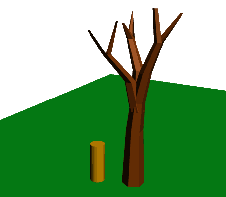 The same scene in the testbed, with an obstruction shape generated by placeProjected3DObstruction() for the tree geometry.