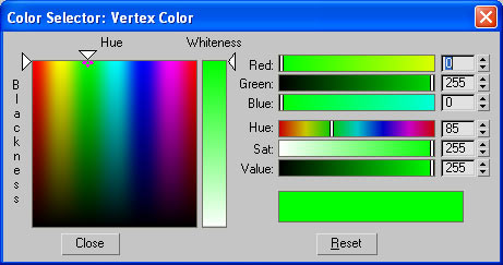 To mark faces as belonging to section 0, set the vertex colours (for all vertices in the relevant faces) to full green. This section is commonly associated with a terrain callback in the case where as single terrain layer is present.