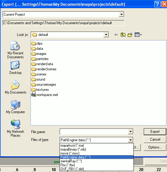 (If PathEngine data doesn't appear on this list then that probably means that the exporter is not currently loaded.)